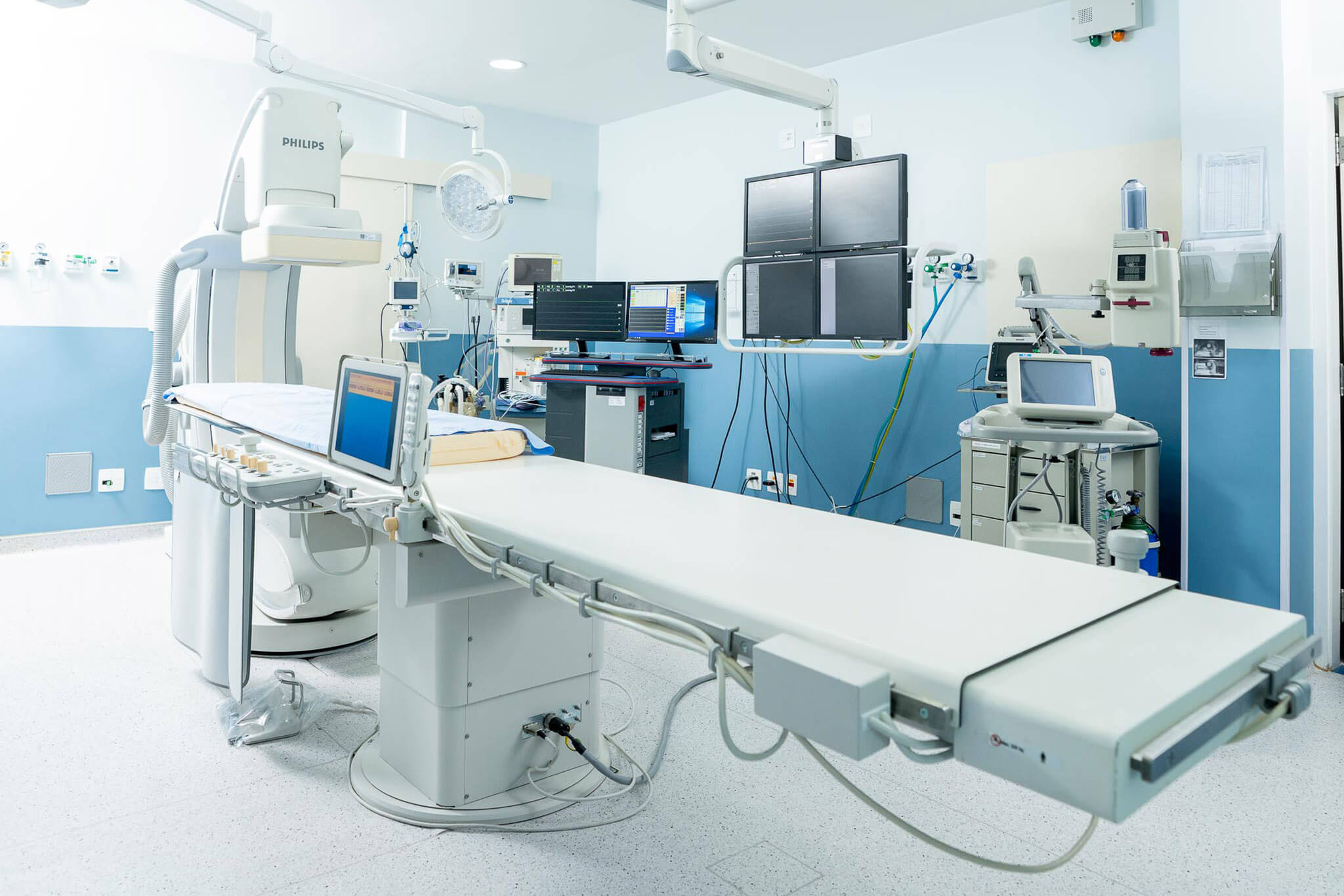 Conta com equipamentos que estão entre os mais modernos do mercado e com a disponibilidade em sala de polígrafo, monitores auxiliares, sala de comando, aparelho de anestesia, bomba de contraste e cardioversor.